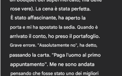 Il mio partner ha insistito per pagare il conto, mi pento di averglielo permesso