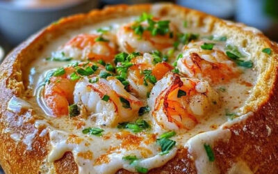 Ciotola di pane ripiena di frutti di mare: una lussuosa e cremosa zuppa di pesce servita in una ciotola di pane croccante a lievitazione naturale per un'esperienza culinaria senza pari. Questa zuppa è ricca di gamberi, granchio e una vellutata salsa bianca, che la rendono una delizia perfetta! Ingredienti (per 4 persone): Per la zuppa: 1 cucchiaio di olio d'oliva 2 cucchiai di burro non salato 1 cipolla media, tritata finemente 2 spicchi d'aglio, tritati finemente Ricetta 😍😍👇👇👇