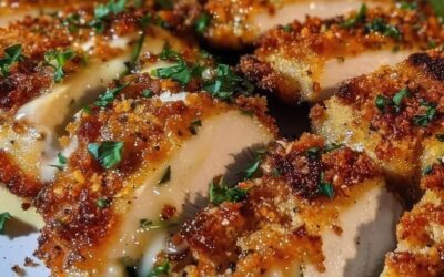 "Pollo croccante e dorato, ricoperto da una saporita crosta di aglio e parmigiano. Perfetto per una cena semplice ma d'effetto!"…
