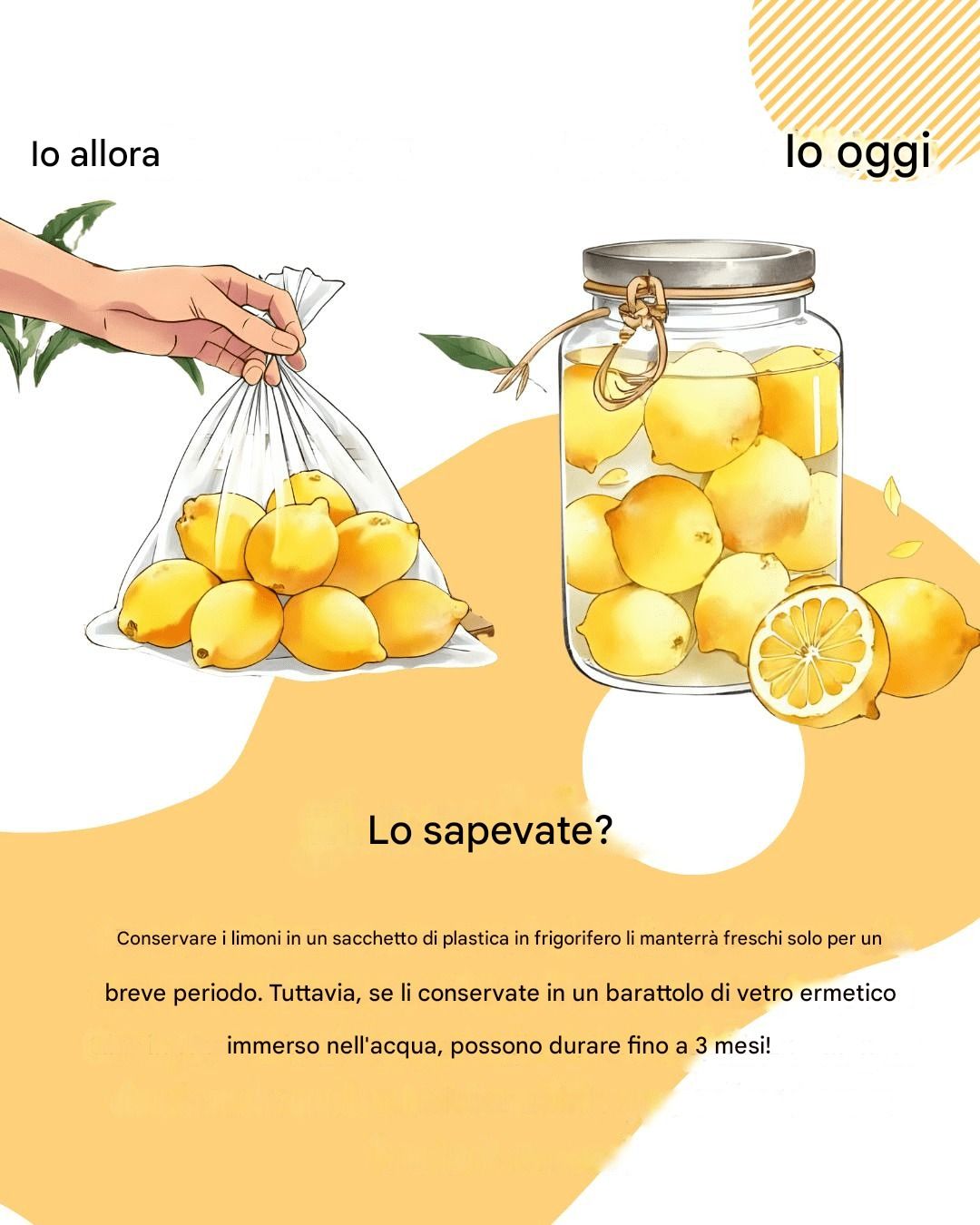 Questa tecnica non solo mantiene il limone fresco, ma contribuisce anche a preservarne la succosità, il colore e l'aroma.