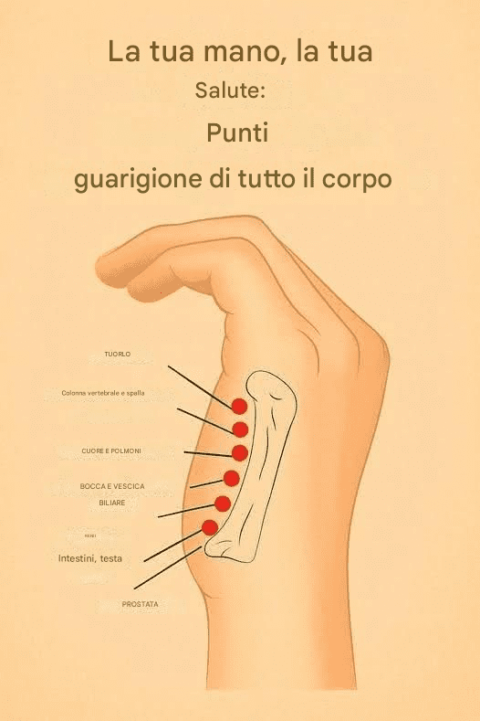Sapevi che la tua mano è una mappa di tutto il tuo corpo? In riflessologia e in vari sistemi di medicina tradizionale, si ritiene che alcuni punti della mano siano collegati agli organi interni e agli apparati corporei. Premendo o massaggiando questi punti curativi, puoi migliorare il tuo benessere, ridurre lo stress e persino alleviare alcuni disturbi.