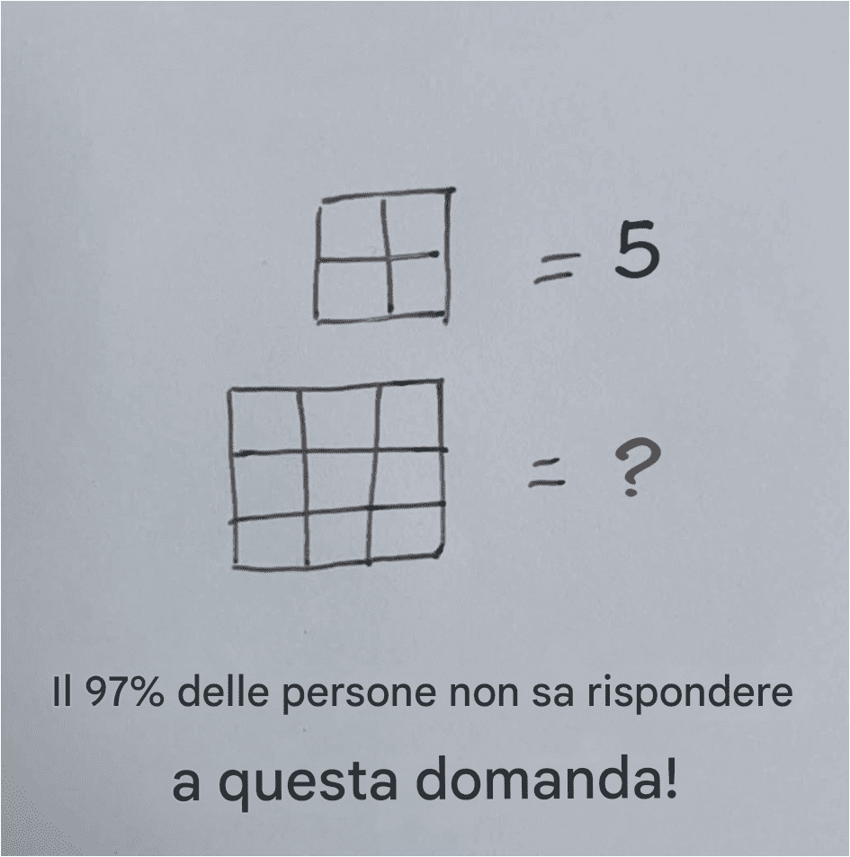Un istinto naturale? Conti solo i quadrati più evidenti, quelli che catturano la tua attenzione. In una griglia 3x3, identifichi rapidamente 9 quadratini. Poi pensi a quello più esterno, il più grande: et voilà, fa 10. Ma la sottigliezza sta nelle configurazioni nascoste .
