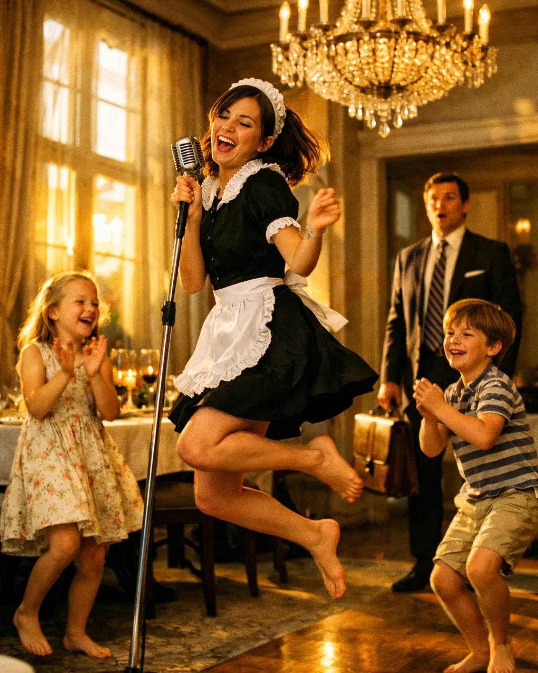 Pochi istanti dopo, Matthew vide Noah e Grace insegnare a Olivia un ballo buffo sul tavolo della cameretta, mentre la luce si rifletteva sul lampadario.